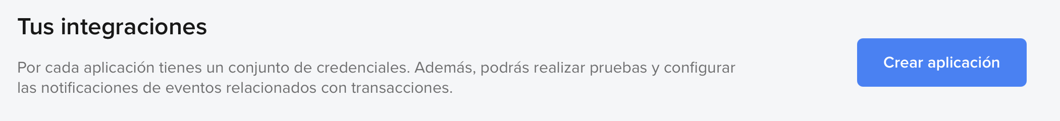 En la sección “Tus integraciones”, hacé clic en el botón azul “Crear aplicación”.