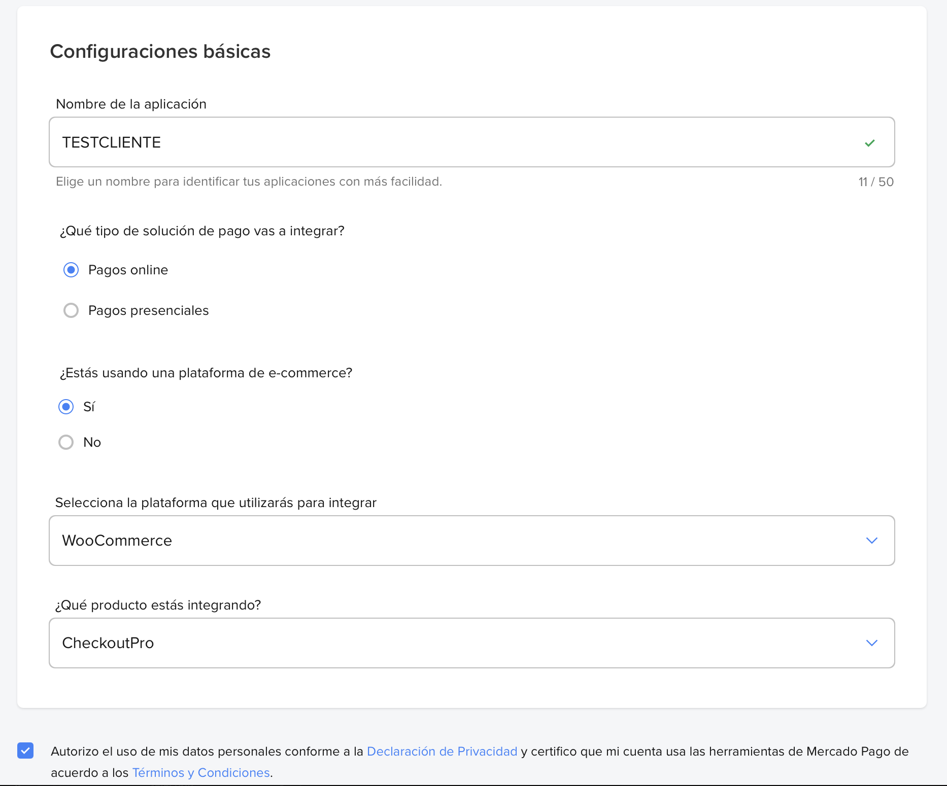 - ¿Qué producto estás integrando?: Seleccioná CheckoutPro.