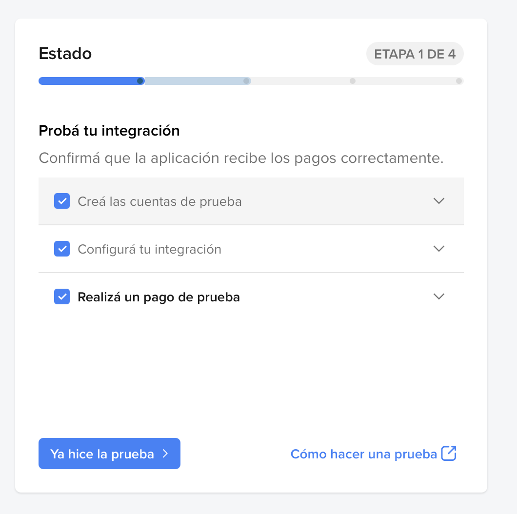 - “Realiza un pago de prueba”