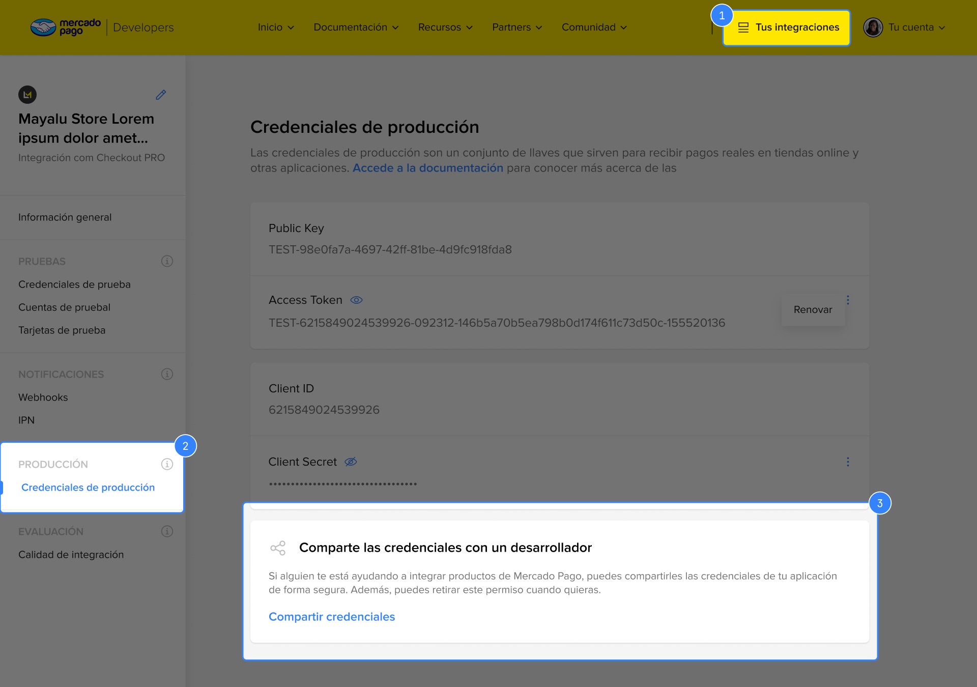 Opción 1 – Compartir credenciales desde tu cuenta de Mercado Pago