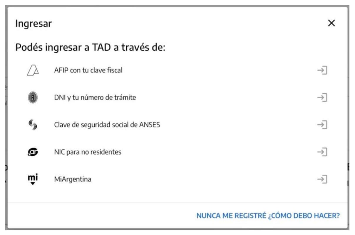 - Vas a poder elegir entre distintas formas de acceso: AFIP, ANSES, etc.
