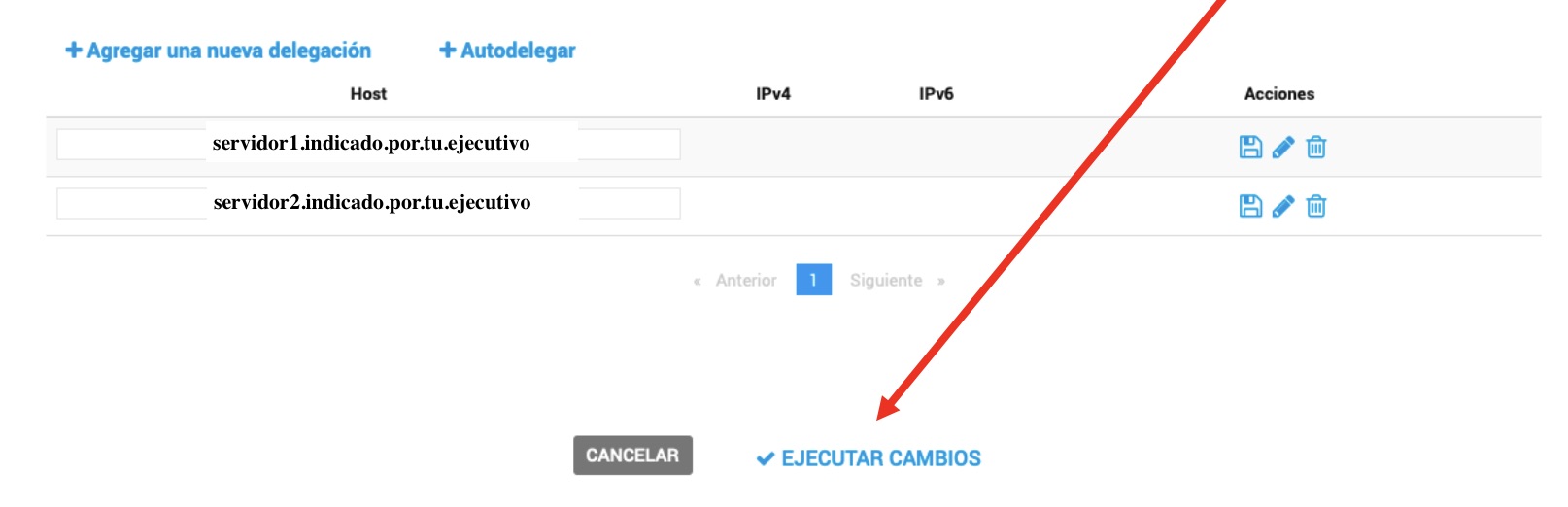 8. Una vez agregadas ambas direcciones, hacé clic en “Ejecutar Cambios”